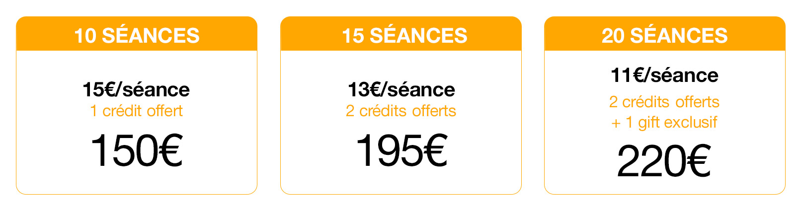 Les crédits de ces packs sont valables uniquement pour des séances entre le 10 janvier et le 10 février.